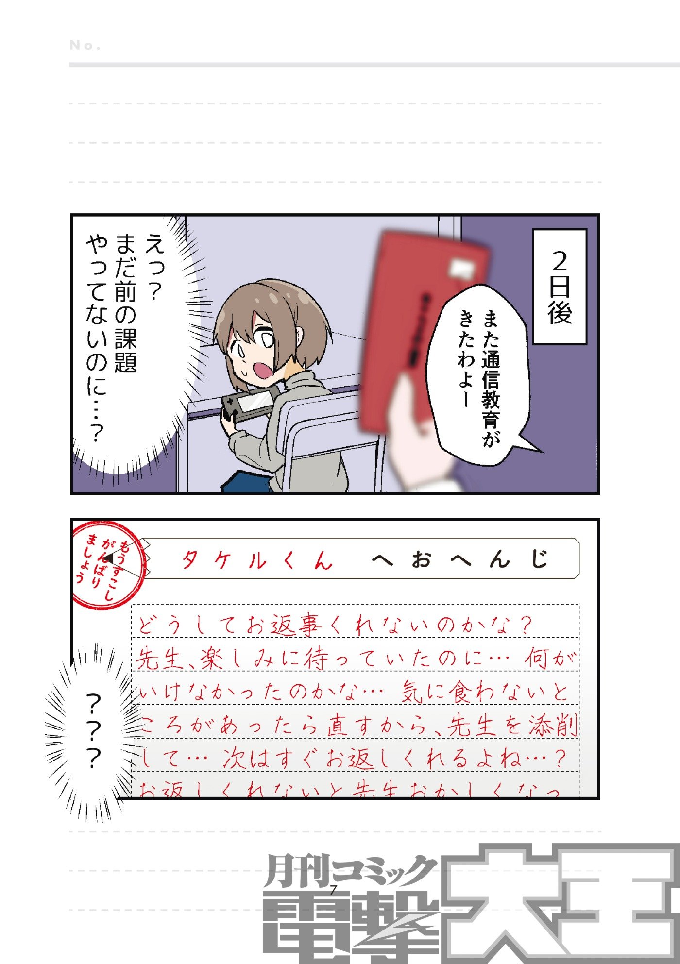小学生のタケルくんと、通信教育の添削員の先生による文通は、