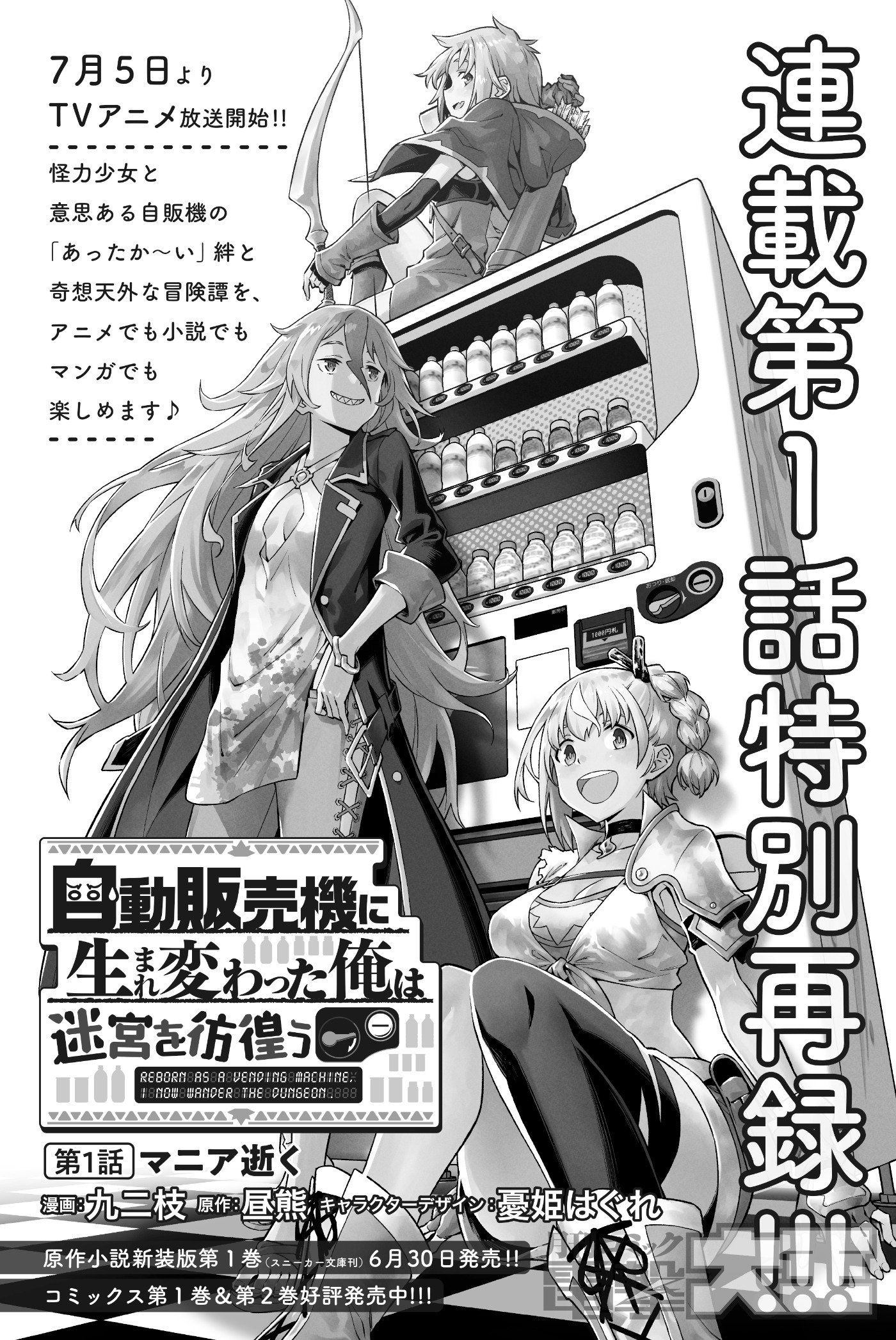 TVアニメ7月5日放送スタート!! 描き下ろしアニメ版権イラストが表紙を飾り、巻頭にはアニメスタッフからのアツ~いコメントや最速公開となるアニメ場面カットなどを集めた特集記事、そして連載第1話の全50ページをドドンと再掲載いたします! 意思ある自販機と怪力少女の奇想天外な冒険譚に"いらっしゃいませ"!!